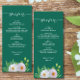 Apportez une élégance raffinée à votre célébration avec le menu Mariage Emerald Green White Floral - un design frais et intemporel qui associe la richesse de l'émeraude profonde à la délicate beauté des fleurs blanches. Le contraste est saisissant mais gracieux, créant un look à la fois classique et moderne. Idéal pour les mariages, les réceptions de jardin ou les soirées sophistiquées, cette carte de menu apporte une touche de finesse à chaque endroit. Une typographie propre permet de lire facilement les plats proposés, tandis que les accents floraux encadrent le design avec un charme naturel. Un mélange parfait de simplicité et de sophistication, ce menu est plus qu’une liste, c’est une expression réfléchie du style et de l’esprit de votre mariage.