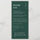 Un élégant minimaliste vert émeraude fête mariage merci carte de réception. Personnalisé avec votre message de remerciement spécial dans la typographie stylisée. Un gardien spécial vous remercie à vos invités. Conçu par Thisisnotme©