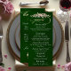 Un motif de défilement en arc de rose de style Rococo et un monogramme de cœur embellissent ce menu de mariage. Détails du menu sur le devant et un message de remerciement pré-écrit pour vos invités qui peut être facilement modifié avec votre propre message, au dos. Conçu pour se coordonner avec la collection de mariage Romantic Roses & Calligraphy. Pour modifier les détails, cliquez sur « Personnaliser ». Pour déplacer le texte ou modifier la taille, la police ou la couleur du texte, cliquez sur « Cliquez pour personnaliser davantage »