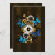 Composition de l'horloge ronde steampunk avec cadran romain noir, décoré avec des engrenages or et laiton, papillons Morpho bleu et lentilles endommagées sur arrière - plan rayé brun. Style Steampunk.