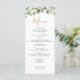 Conçu pour correspondre à notre collection Mixed Greenery mariage, ce menu personnalisable comprend un feuillage vert aquarelle avec du texte doré et gris et un cadre doré sur le dos. Pour effectuer des modifications avancées, accédez à l'option "Cliquez pour customiser plus loin" sous Personnaliser ce modèle.