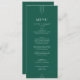 This wedding menu from the Everly Collection features a deep emerald green design with refined art deco line accents and elegant retro typography. It's modern, minimalist, and formal—perfect for an editorial-inspired wedding.
