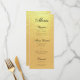 Un menu de feuille d'or qui utilise un script calligraphique élégant pour le titre et les sous-titres. Tout le texte est noir. Recommandé pour un mariage aux couleurs mariages noir et or, mais il peut être utilisé en d'autres occasions.