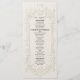 Elevate your black-tie reception tablescapes with this sophisticated design featuring simulated relief details and timeless typography for a luxurious finish.This formal design centers on an elaborate, symmetrical baroque frame featuring scrolling flourishes and intricate floral relief motifs in soft gray. At the header, a decorative oval border encases a regal crest adorned with mirrored bird figures, set against a monochrome ivory and cream background. The text layout utilizes classic serif typography with small caps headers and delicate handwritten script accents to convey traditional romance. This is a flat printed image with a Faux Letterpress effect, not actual raised paper or embossed material.