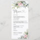 Menu Fête des mariées vert rose pâle