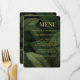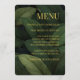 Cette carte de menu tropicale foncée est parfaite pour un mariage sur la plage ou à destination. Le design est composé de feuillage tropical associé au type or, très moderne et moody pour une atmosphère estivale tropicale.