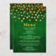 Ce menu rustique et grunge de mariages propose des feuilles dorés sur un arrière - plan en détresse vert. Le texte combine les polices italique et serif pour un look moderne et élégant. Ce sera parfait pour les mariages de automne d'automne.
