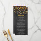 Ce menu rustique et grunge mariage est composé de feuilles d'or sur un arrière - plan au charbon de bois noir. Le texte combine les polices italique et serif pour un look moderne et élégant. Ce sera parfait pour les mariages de automne d'automne.