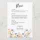Menu Fleur sauvage aquarelle Elegant Dusty Blue Mariage