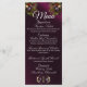 L'avant présente des bouquets fleurs sauvages aux belles couleurs d'été sur un arrière - plan violet avec les détails du menu et le monogramme de feuilles liées. L'arrière a un espace réservé pour le monogramme des feuilles liées. Changer les polices peut créer un look plus élégant ou rustique. Disponible en plusieurs couleurs pour votre thème mariage. Conçu pour coordonner avec Rustic Fleurs sauvages & Ribbon Collection. Pour modifier les détails, cliquez sur "Personnaliser". Pour déplacer le texte ou modifier la taille, la police ou la couleur du texte, cliquez sur "Cliquez pour customiser plus loin"