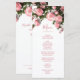 Cette carte de menu de fleurs sauvages présente des roses 3D roses et de la verdure ainsi qu'un script élégant écrit à la main sur fond blanc. Personnalisez-le avec les noms des mariés au verso.
