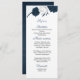 belles fleurs blanches et bleu marine et élégant menu mariage feuille botanique.