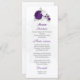 Fleurs royales romantiques violettes & blanches avec carte de menu mariage botanique feuille argent. Les détails de la parties scintillant sont simulés.