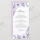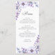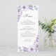 Menu Fleurs d'aquarelle violet. Mariage floral violet