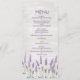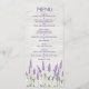 Menu Fleurs de lavande violette sur le Mariage de bois