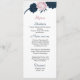 belles fleurs roses et bleu marine et élégant menu feuille mariage botanique.