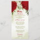 Belle carte de menu mariage avec fleurs rouges et blanches et feuilles verts Les détails de la parties scintillant d'or sont simulés. POUR PLUS DE PRODUITS CORRESPONDANTS cliquez sur la collection ci-dessus ou contactez-moi