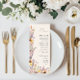 Offrez à vos invités le menu de la soirée avec ce ravissant mélange pastel de lavande, rose et crème. Le design avant affiche un magnifique motif de fleurs sauvages parfait pour un mariage de printemps ou d'été, une baby shower ou une douche de mariée. Personnalisez facilement le design grâce au modèle de design. Coordonez avec les autres éléments de la collection Spring Meadow.