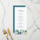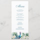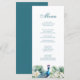 Élevez votre réception de mariage avec notre "Menu de mariage Paon Fleurs Tropicales Sarcelle". Ce menu exquis présente un mélange captivant de plumes de paon sarcelle et de fleurs tropicales vibrantes, ajoutant une touche d'élégance exotique à vos tables de réception.
