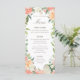 Menu floral aquarelle rose printanier et pêche