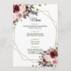 Floral Burgundy Gold Parties scintillant Mariage géométrique Menu.