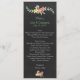 Long et maigre menu de table de mariage fait dans un regard gris de tableau à la mode, avec des graphiques des pulvérisateurs floraux en pastel, au dessus et au bas du menu. Personnalisez tout le texte pour adapter à votre menu de réception de mariage. Belle addition à votre table de réception de mariage.