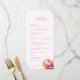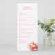 Ce menu de mariage élégant présente une mise en page verticale avec une palette de couleurs pastel douces de rose clair et de blanc, créant une atmosphère sophistiquée et invitante. Le design comprend des sections claires pour les entrées, la salade, le plat principal et le dessert, chacune mise en évidence par des titres gras et une typographie serif épurée. Une grande illustration florale détaillée ajoute une touche de réalisme et d'élégance sur le côté droit, tandis qu'un espacement généreux assure la lisibilité et une hiérarchie structurée. Parfait pour les événements formels, ce menu combine un style classique avec une simplicité moderne, ce qui en fait un choix idéal pour les couples cherchant à établir une ambiance chaleureuse et accueillante le jour de leur mariage.
