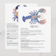 Menu Floral Lobster Coastal Nautical Beach Wedding