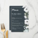 Menu Floral mariage avec fleurs blanches et texte personnalisable imprimé sur arrière - plan foncé