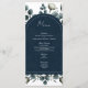 Menu floral moderne bleu foncé et blanc