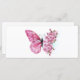 Flower arrangement of pink butterfly with rose Japanese cherry blossoms on white background.