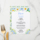 This beautiful and elegant wedding menu features watercolor blue forget-me-nots, daisies and foliage. The text combines handwritten script and serif fonts for a stylish and modern look. This is perfect for a spring or summer rustic wedding.