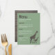 Menu Giraffe Safari d'argile, Mariage rustique