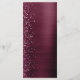 Cet élégant menu mariage moderne présente une bordure en faux diamant de parties scintillant sur un arrière - plan en métal brossé en faux bordeaux. Le texte personnalisable combine écriture manuscrite blanche et polices sans serif. La conception du métal brossé bordeaux et de la parties scintillant est répétée à l'envers.