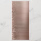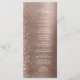 Cet élégant menu mariage moderne présente une bordure en parties scintillant de diamant sur un arrière - plan en métal brossé en or rose. Le texte personnalisable combine écriture manuscrite blanche et polices sans serif. Le métal brossé et la parties scintillant en or rose sont répétés à l'envers.