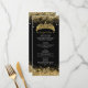 Un riche arrière - plan noir montre une tiare dorée scintillante avec des confettis en faux or qui pleuvent du haut de cette carte de menu pour collectionner sur le bas. Fait une carte de menu parfaite pour la fête la plus blingieuse de Quinceanera jamais! Cela peut aussi être customisé pour l'anniversaire de toute fille pétillante ou toute autre célébration. Disponible avec des produits correspondants.