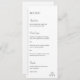 Menu mariage moderne avec un design géométrique simple et minimal avec une ligne verticale le long du côté gauche avec votre menu dans l'alignement gauche. Les en-têtes sont en écriture manuscrite pour une touche élégante. Dans le coin inférieur droit se trouve votre deux monogramme initial sur une petite ligne horizontale. La palette de couleurs peut être modifiée dans l'outil d'édition de conception.