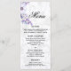 Ce magnifique menu mariage a un design très élégant de damas gris, gris et blanc dans l'arrière - plan avec un bel arrangement floral en violet avec des baies et des fleurs en haut à gauche.
