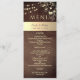 Apportez de la chaleur et du charme à votre réception avec cette élégante carte de menu de mariage en bois rustique, dotée d'accents floraux dorés délicats et de guirlandes lumineuses scintillantes. Parfaite pour les mariages romantiques d'automne ou d'hiver, cette conception ajoute une touche confortable et raffinée à votre décor de table. Personnalisez avec vos sélections de menu et les détails de votre mariage pour créer une expérience culinaire mémorable que vos invités adoreront.