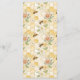 This honeycomb baby shower menu card features a cute bee holding a sunflower, surrounded by floral elements and bees on a warm honeycomb background. The playful and inviting style makes it a perfect personalized table detail.