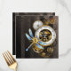 Cadran d'antiquités avec or et lances en laiton, décoré de libellules mécaniques sur arrière - plan brun rayé. Steampunk.