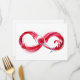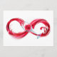 Infinity symbole of continuous stream of red pouring into glass glass glass on white background.