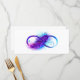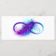 Infinity symbole with a beautiful feather painted in purple and blue bright colors on white background