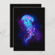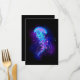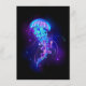 Grande méduse bleue, artistiquement dessinée, brillante, brillante, avec de longues tentacules sur arrière - plan noir avec bioluminescence violette. Méduse brillante.