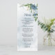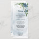 belles fleurs bleues et blanches et menu mariage romantique feuille vert.