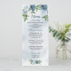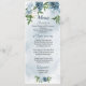 belles fleurs bleues et blanches et menu mariage romantique feuille vert.