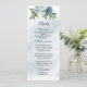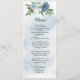 belles fleurs bleues et blanches et menu mariage romantique feuille vert.