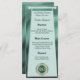 Un menu élégant avec un motif vert et feuille et votre numéro d'anniversaire unique en parties scintillant et en or.