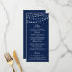 Simple mais élégant, les lampes à cordes de la collection de mariages bleu marine est un design étonnant avec de belles lumières à cordes blanches suspendues sur un arrière - plan bleu marine, qui est parfait pour toute célébration mariage moderne. Ces cartes de menu peuvent être personnalisées pour votre occasion spéciale et feraient le menu parfait pour votre mariage, douche nuptiale, fête de fiançailles, fête d'anniversaire et bien d'autres occasions spéciales. Ajoutez votre libellé personnalisé à cette conception à l'aide des cases "Modifier ce modèle de conception" situées à droite de l'élément, ou cliquez sur le bouton bleu "Customiser" pour arranger le texte, modifier les polices et les couleurs et ajouter des informations ou des images supplémentaires à cette conception.