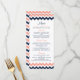 Simple mais élégante, la collection moderne chevron mariage est un design époustouflant avec un joli imprimé zig-zag de couleur rose, marine et blanche, parfait pour toute célébration mariage moderne. Ces cartes de menu peuvent être personnalisées pour votre occasion spéciale et feraient le menu parfait pour votre mariage, douche nuptiale, fête de fiançailles, fête d'anniversaire et bien d'autres occasions spéciales. Ajoutez votre libellé personnalisé à cette conception à l'aide des cases "Modifier ce modèle de conception" situées à droite de l'élément, ou cliquez sur le bouton bleu "Customiser" pour arranger le texte, modifier les polices et les couleurs et ajouter des informations ou des images supplémentaires à cette conception.